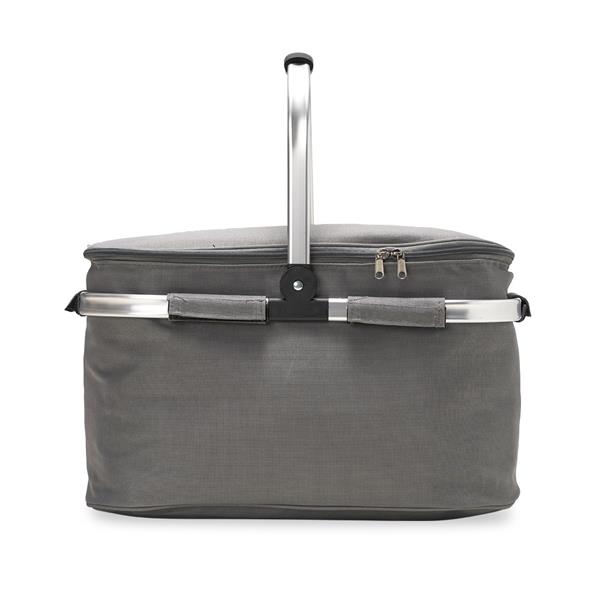 Bolsa térmica de poliéster com capacidade de 33 litros, revestimento térmico com costura soldada (não vaza). Contém armação de transporte removível em alumínio com pegador emborrachado. Gravação da logomarca em 1 cor já inclusa.