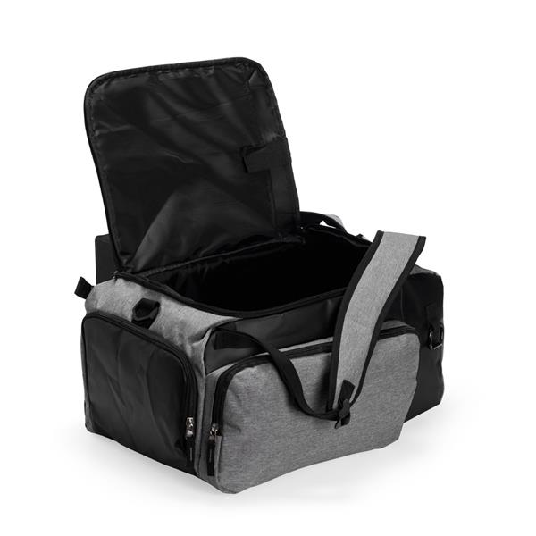 Bolsa esportiva resistente à água, feita em poliéster com detalhes emborrachados e capacidade para até 32 litros. Possui três compartimentos principais, um deles com bolso para notebook de até 13 polegadas, além de espaço dedicado para guardar tênis. Conta ainda com bolso lateral de malha para acesso rápido aos itens. A bolsa apresenta alça transversal regulável e removível, duas alças para as costas e área costada revestidas com espuma respirável, permitindo o uso como mochila. Gravação da logomarca em 1 cor já inclusa.