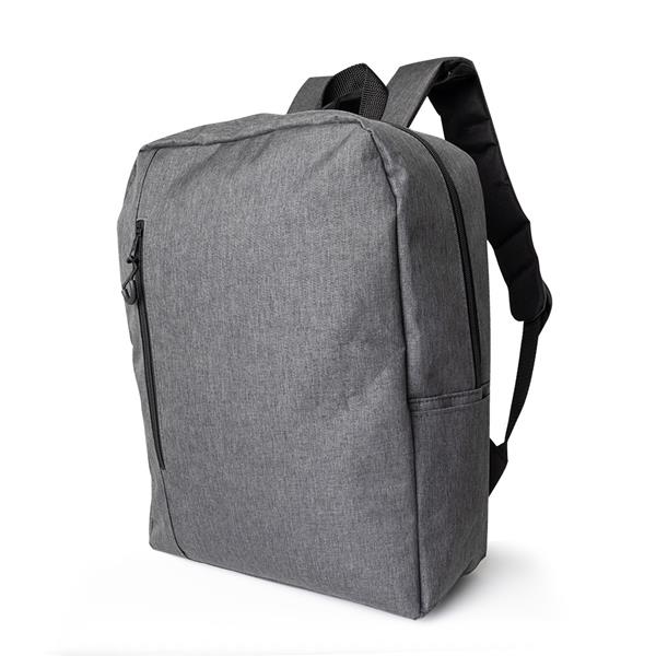 Mochila de nylon 21 litros com dois compartimentos, sendo o principal com bolso para notebook 15,6. A mochila possui bolso lateral, suporte externo para USB e adaptador P2. Gravação da logomarca em 1 cor já inclusa.